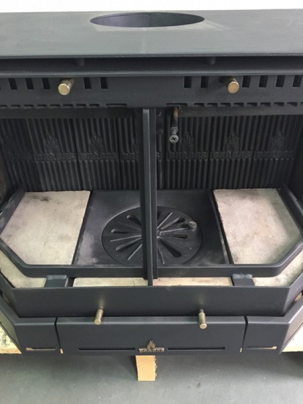 Prachtige stijlvolle inzetkachel van het Nederlandse merk Barbas met groot vermogen. Wij hebben nu eenmalig een 3ZO (3-zijdig open) in de aanbieding. Het betreft hier de grootste uitvoering mét ventilatoren..