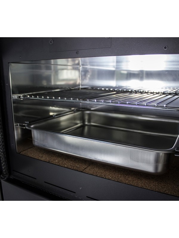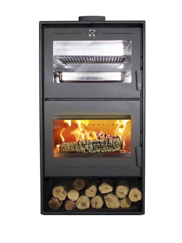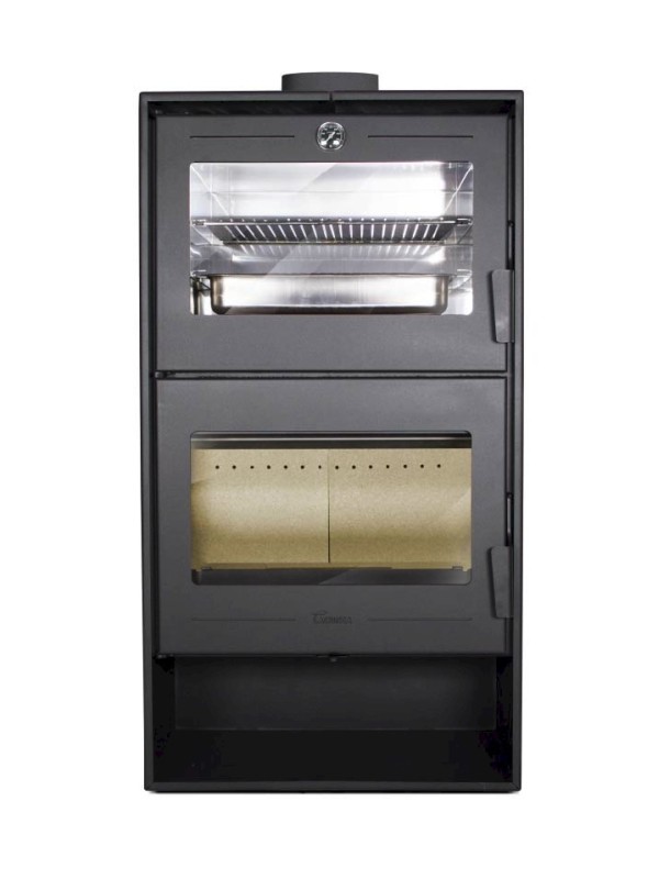 De Lacunza Altea combineert warmte en kookgemak in één stalen houtkachel met ingebouwde oven. Je bakt en grilt moeiteloos met het meegeleverde RVS braadslede en grillrooster.