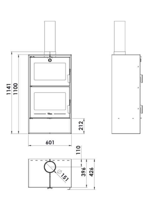 Onderin plaats je eenvoudig hout in het open opbergvak.